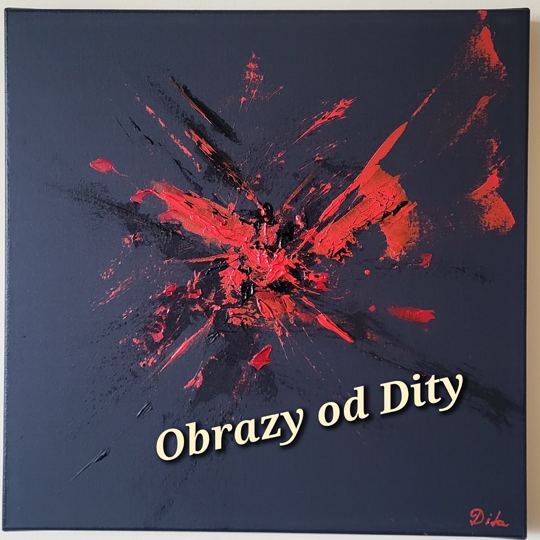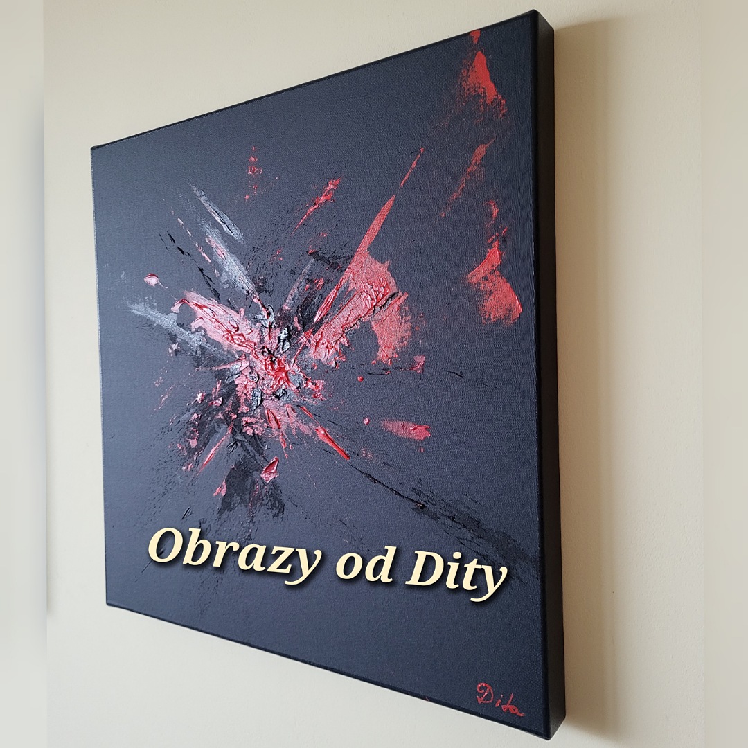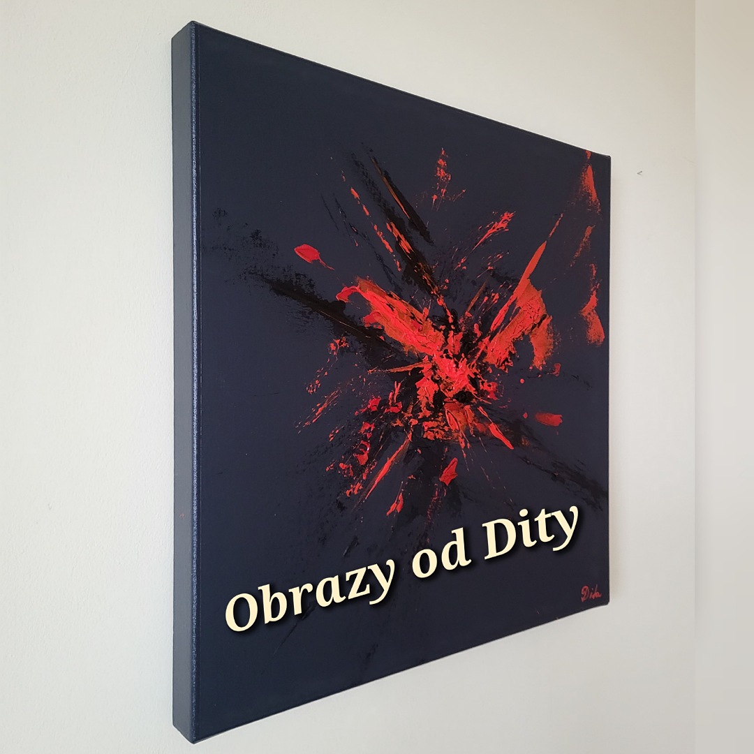 ENERGIE - červená jako barva lásky s černou v pozadí, která ji poskytuje zázemí, nechá ji vyniknout - zářit. Pro hloubku jsem použila matné černé pozadí, s použitím několika druhů černé v lesku, matu i různých struktur a červené ve dvou různých odstínech. Kontrast síly červené a způsobu v lehkosti nanesené barvy, tvoří tu pravou nepřehlédnutelnou ENERGII.