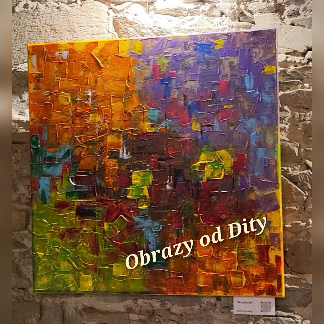 MOZAIKA DNÍ - tak jako den je pro každého jinak barevný, tak tato mozaika dní skýtá mnoho střípků dnů všedních i nevšedních... Obraz se dá pověsit všemi 4 směry a je podepsán na bocích.
